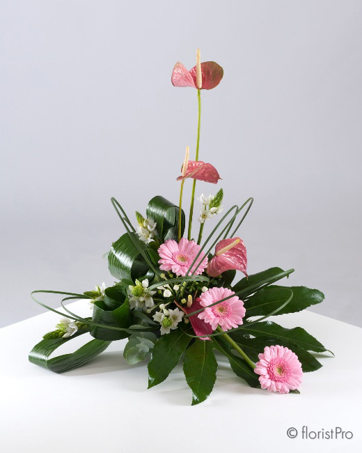 Beautiful ,odern pink arrangement with Gerberas and foliage , simple but stunning.